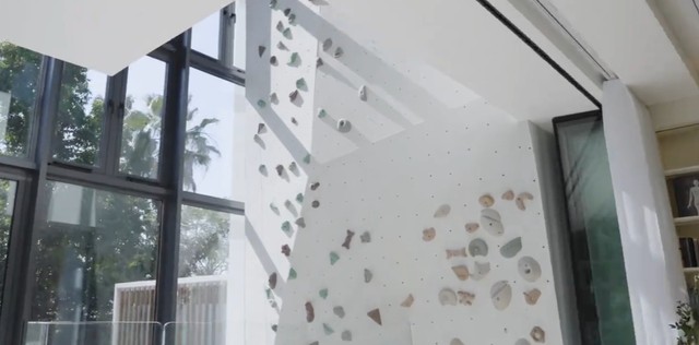 为了能让王石在家也能够进行攀岩,她还专门为其设计一个攀爬墙。