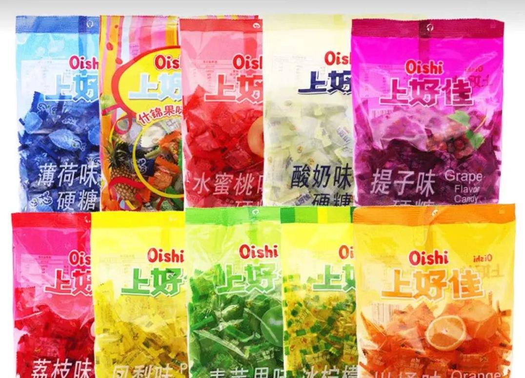 另一边,像**上好佳的水果糖**,虽然是我们小时候常吃的零食,到现在它依然保持着经典的口感,并不断推陈出新,满足各种口味需求。