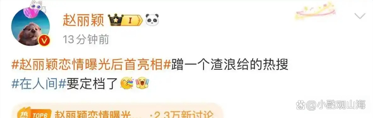 这场看似矛盾的“自嘲式营销”实则暗藏玄机。2024年,赵丽颖刚捧回“微博Queen”桂冠,转头却直指平台助推隐私曝光。网友深挖发现,恋情词条在微博持续霸榜,而其他平台却悄然降温——这波操作让业内直呼:“热搜撤不掉,要么是赵丽颖不想管,要么是平台不买账!” 赵丽颖的“渣浪”调侃,既是讽刺平台流量游戏,更是对“明星私生活=免费热搜”规则的硬核反击。