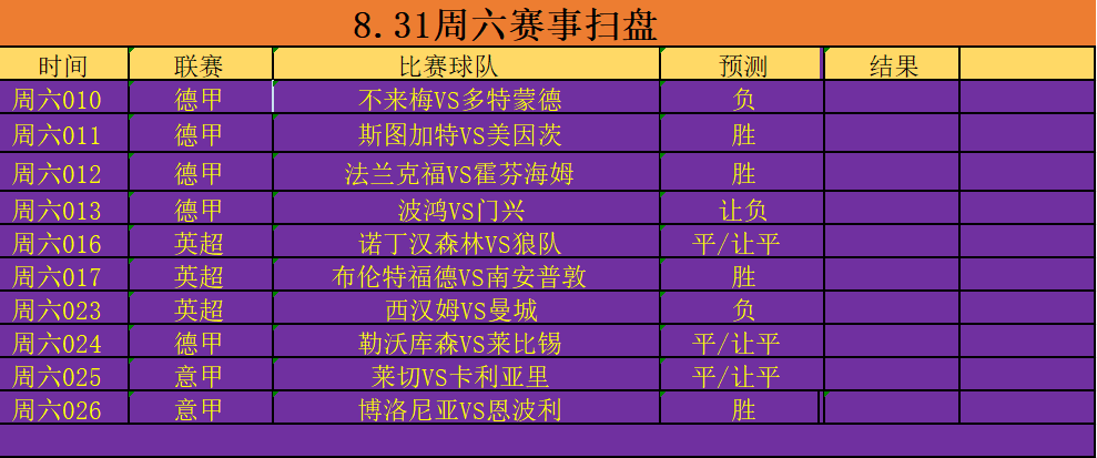 综合分析:尽管各自首轮战况一胜一负,但必须清楚法兰克福近年明显是霍芬海姆的克星,前者近6次主场迎战后者以5胜1平的战绩占据绝对主动,这当中有5次单局能攻入2球或以上,考虑到法兰克福上赛季联赛主场取分能力不俗,霍芬海姆不得不做好全失3分的准备。
