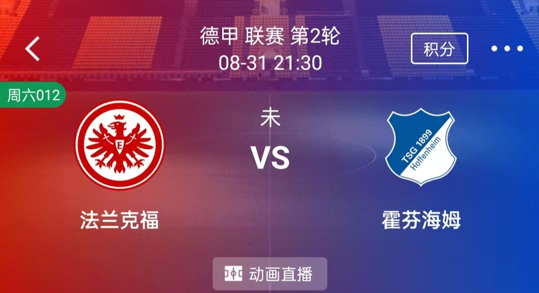 赛事分析:法兰克福近10场4胜2平4负 进22球失19球