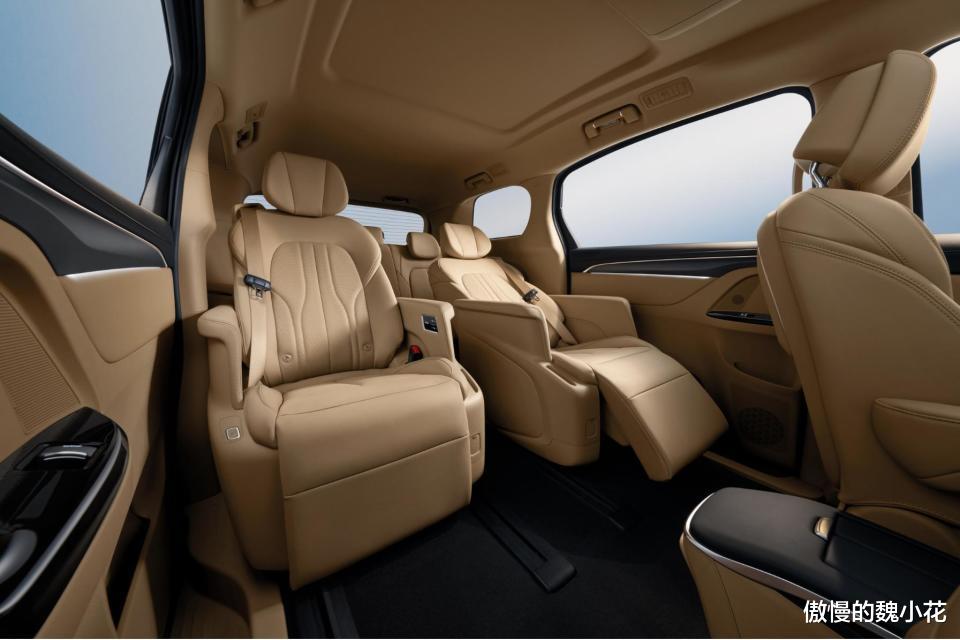 我们还注意到,前后排都配备有独立的扶手区,并且例如后排小桌板、车顶液晶屏也都成为陆尚的标配,前后都采用了零重力的座椅,兼顾了豪华感与舒适度。另外车内的用料也堪称一绝!