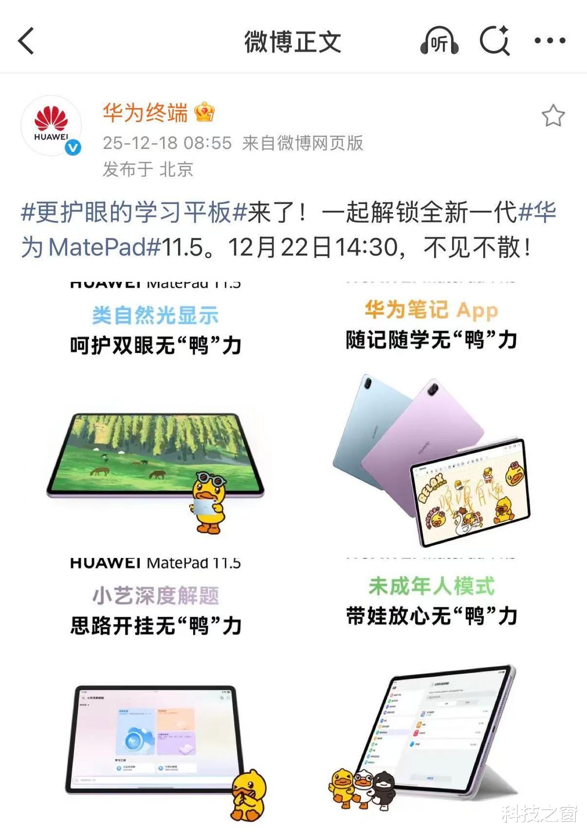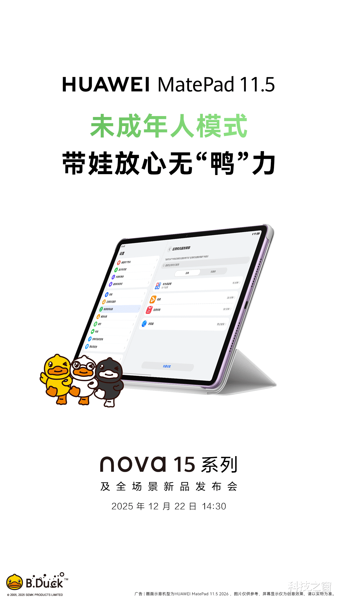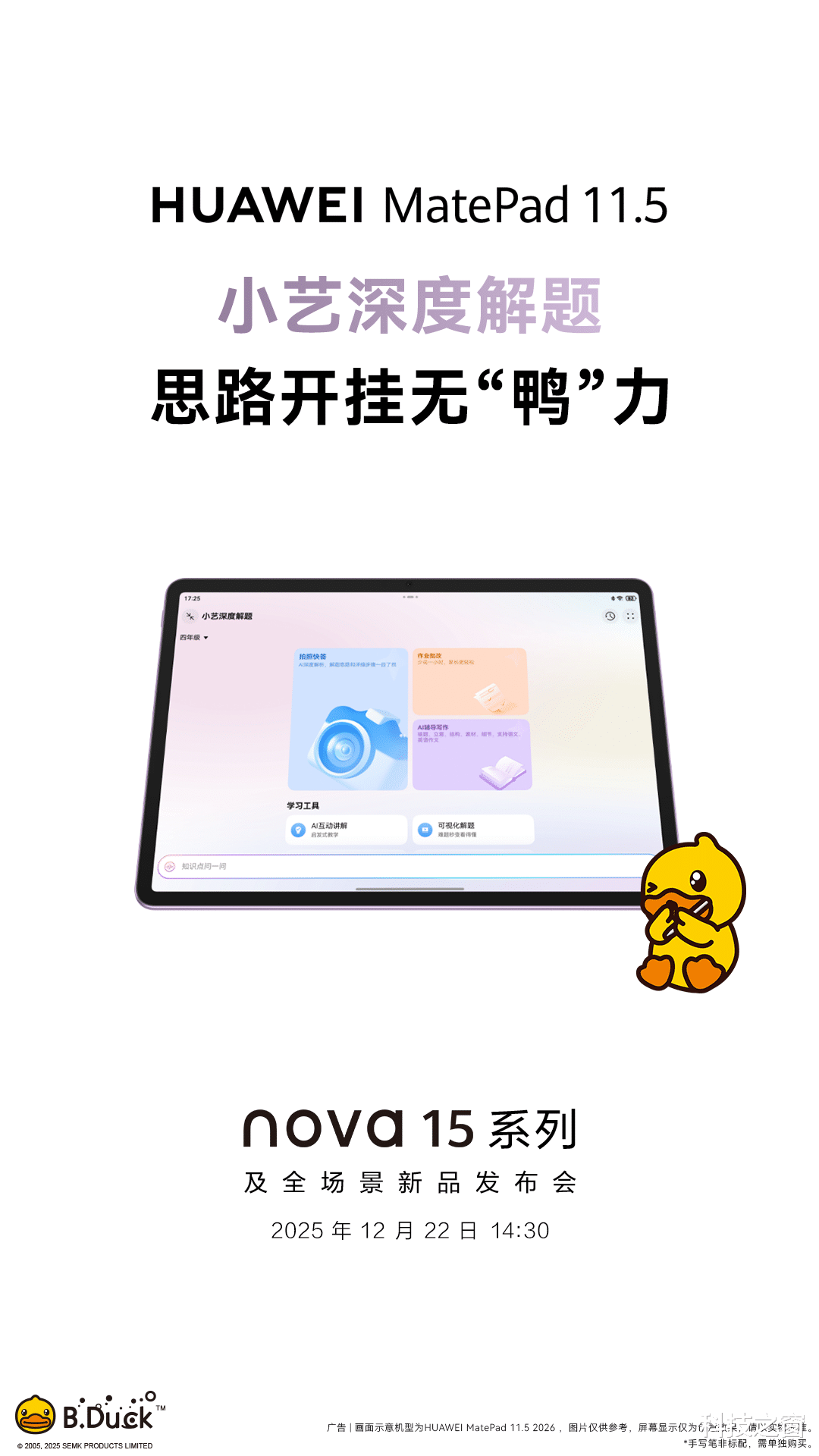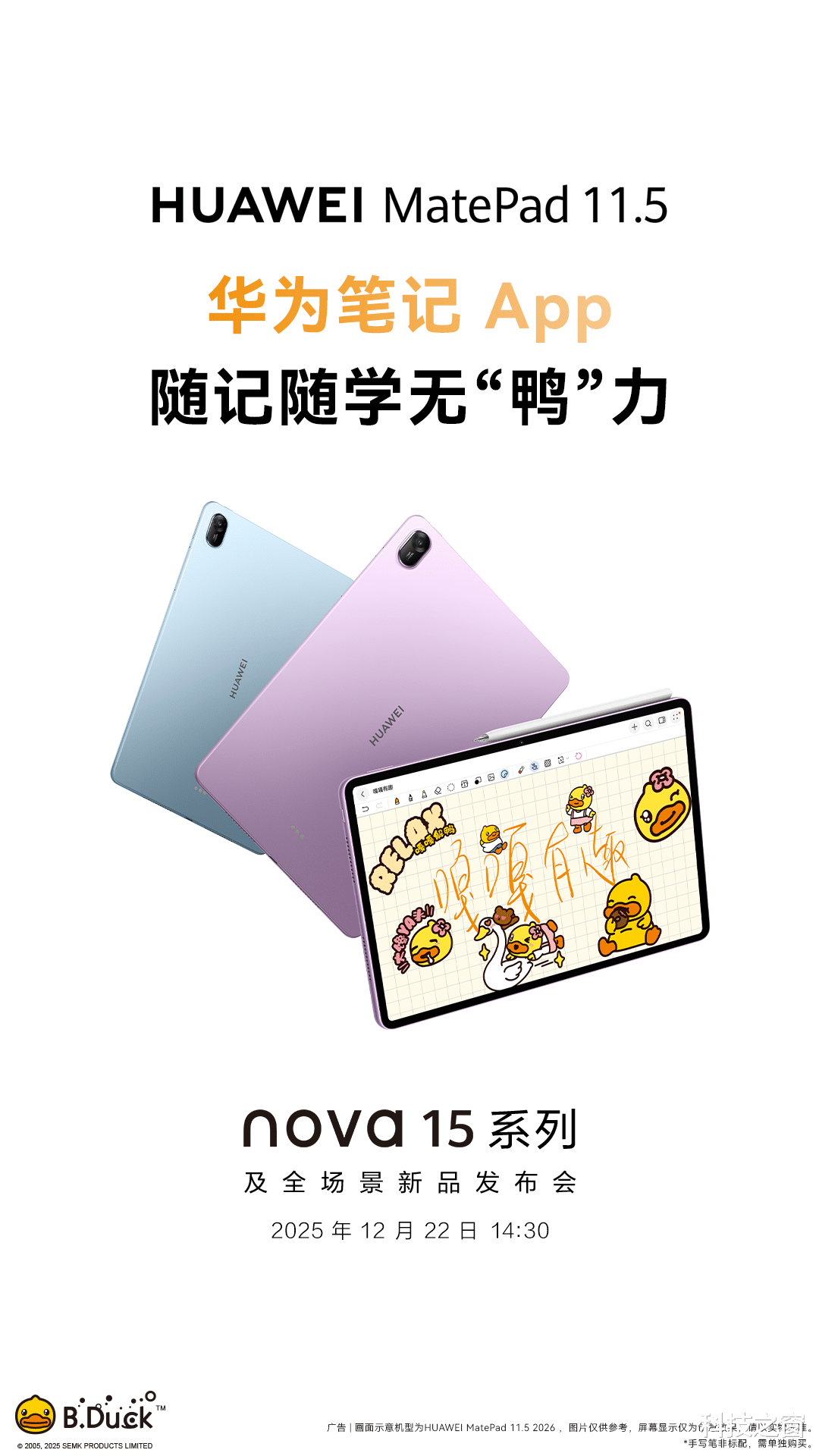 新款华为MatePad 11.5通过“类自然光护眼显示”构建视力保护的物理屏障,利用“鸿蒙AI”重构自主学习的逻辑,再辅以华为笔记与小黄鸭IP的合作带来的情感共鸣,华为正在树立学习平板的新标杆。12月22日,这款集科技与温情于一身的新品将正式发布。它能否成为K12教育平板的标准答案?让我们一起期待。