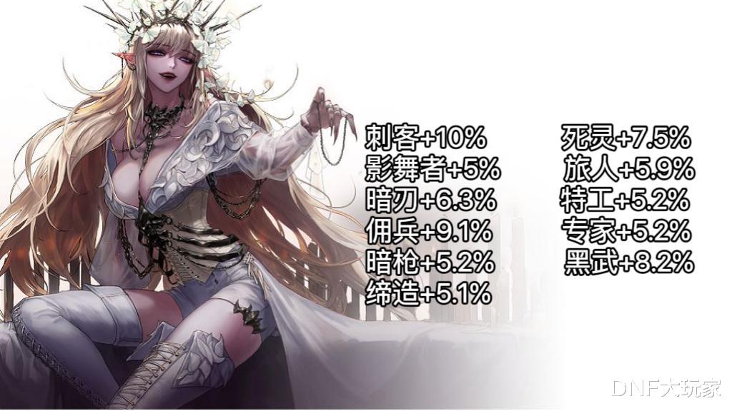 刺客+10%、死灵+7.5%、影舞者+5%。