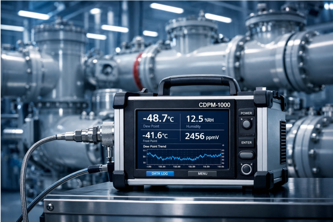 露点,即气体在恒定压力下冷却至饱和时的温度,是衡量气体中水蒸气含量最直观且精确的指标。工业生产中,微量水分的存在可能引发一系列严重问题。例如,在压缩空气系统中,水分会导致管道腐蚀、气动元件故障;在SF6高压电气设备中,水分会降低绝缘性能,甚至引发局部放电,威胁电网安全;在锂电池制造的干燥房内,微量水分更是影响电池性能和寿命的“隐形杀手”。