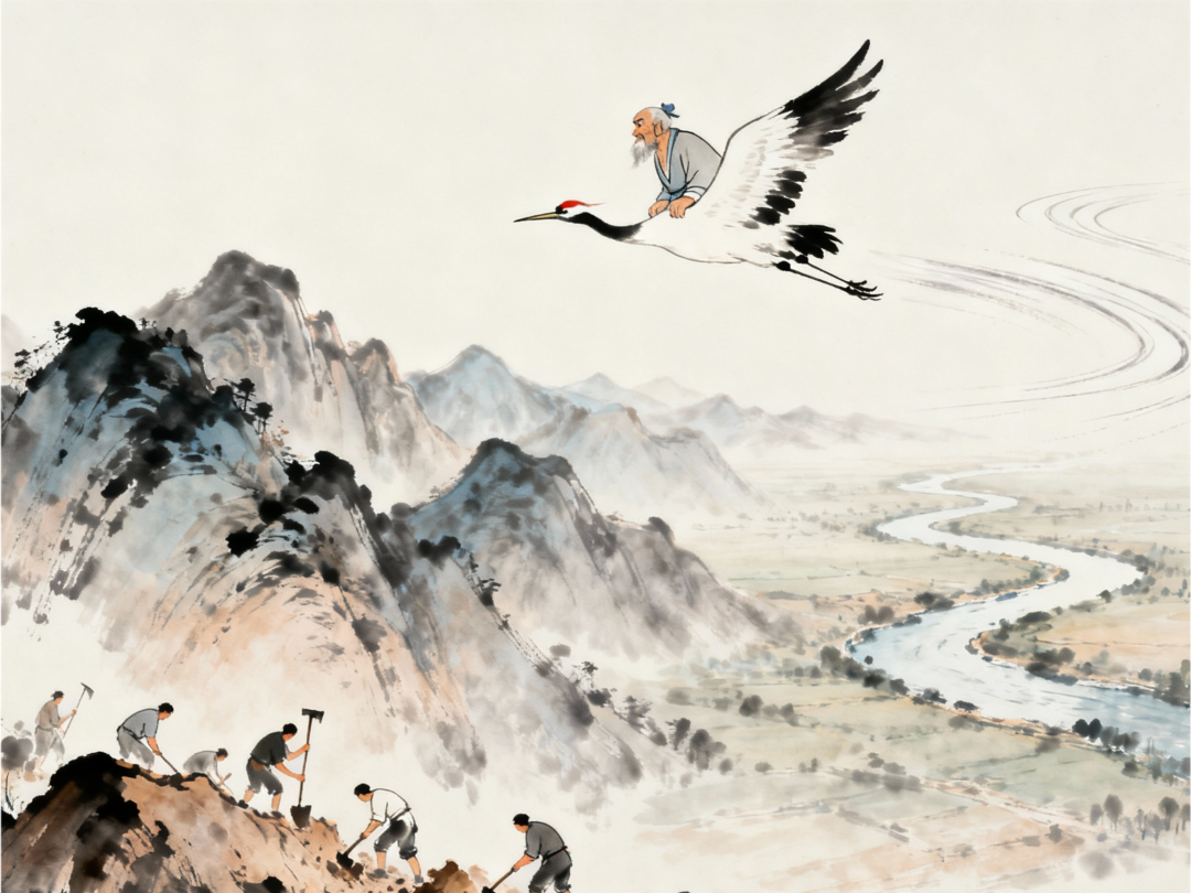 还记得愚公移山吗?老爷子带着全家硬刚太行王屋,感动天神来帮忙。但要是他学会总观视角呢?飞到云层上看看:哦,山左边有条河,右边有平原,移不动山的时候,移自己更划算。