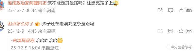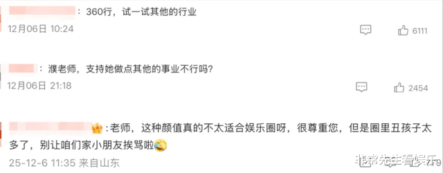说什么的都有,像“360行,试试其他行业吧”、“这长相也敢来演戏?、”“星四代都来了,内娱没救了。”