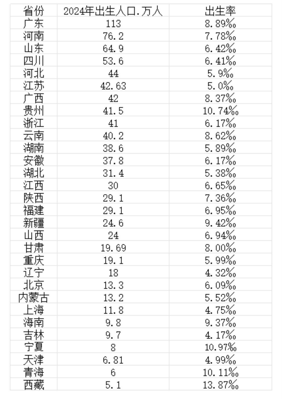 ■ 生育率断层:西藏以12.5‰出生率领跑,超过日本(6.3‰)两倍,而上海出生率(4.4‰)已低于韩国(4.9‰)