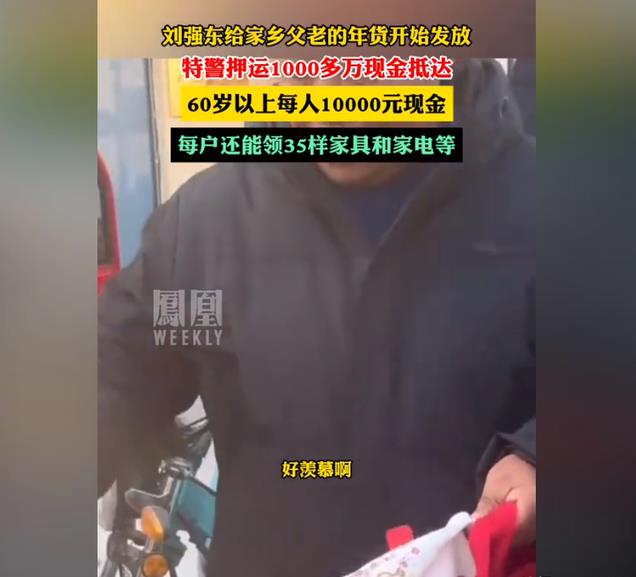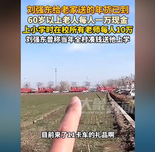 刘强东为了感谢村里的父老乡亲,每家都可以领30几样年货,除此之外,60岁以上了老人每个人都可以领一万块。