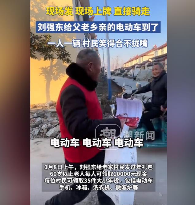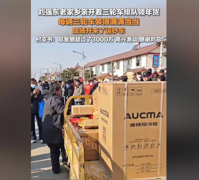 眼下到了年关大家都开始准备年货,刘强东作为一个集团的大老板,不仅他公司的人有年货福利,甚至在老家的村民也有。