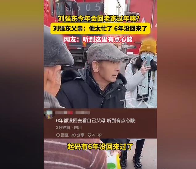 大家在村子里看到了刘强东的父亲,看着老人已经是满脸的沧桑,在被问到刘强东今年会不会回家看望父亲的时候。