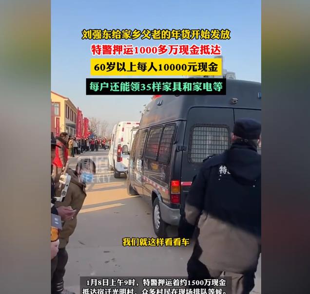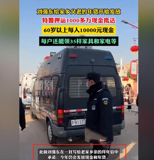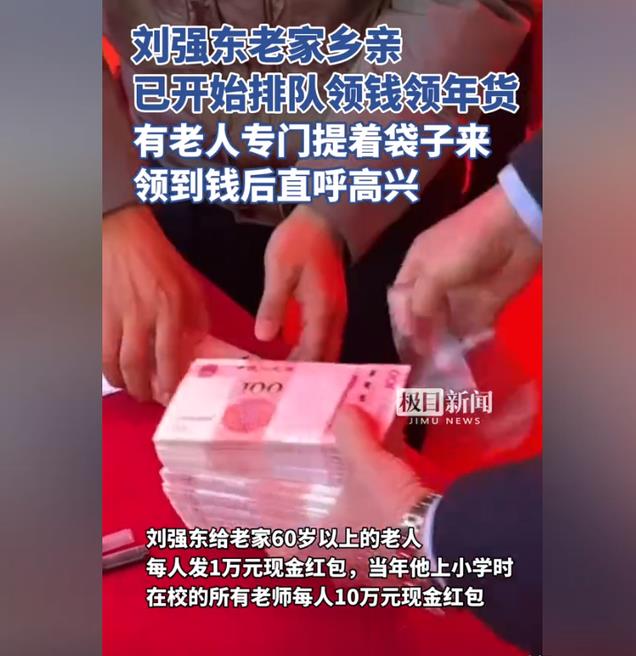 刘强东每年都会给家乡发放现金和年货,之前在刘强东写给老家乡亲的拜年信中,他曾提到了今年也会发放现金和年货。