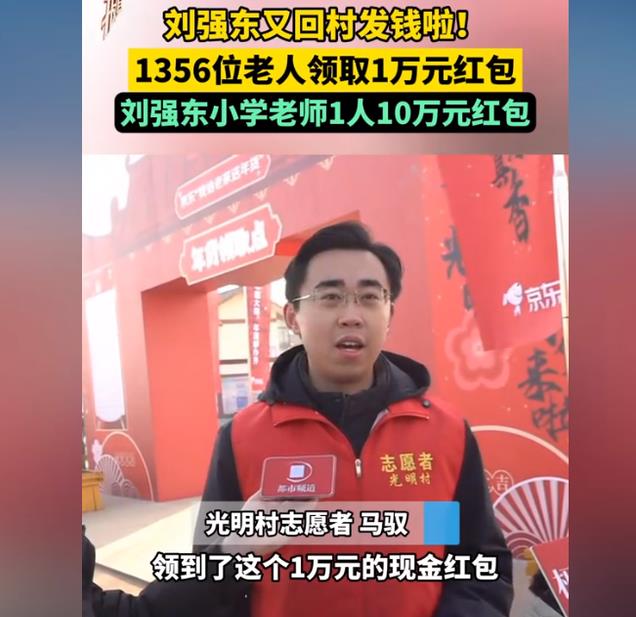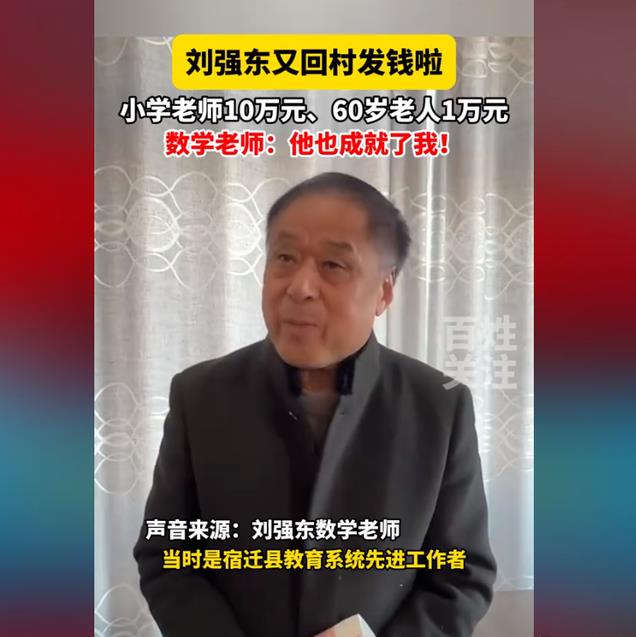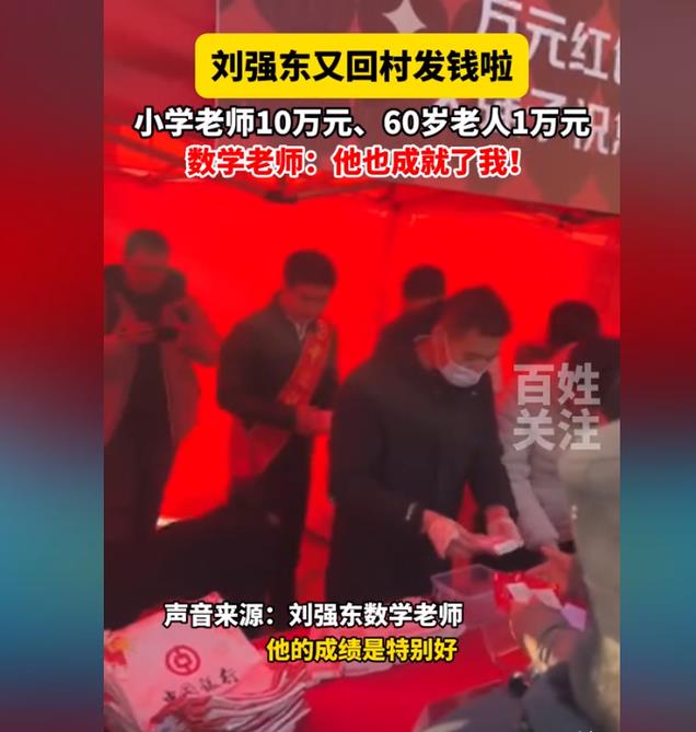 同时受到福利的还有刘强东的小学老师们,不管是有没有教过他的,每个人都有10万现金。