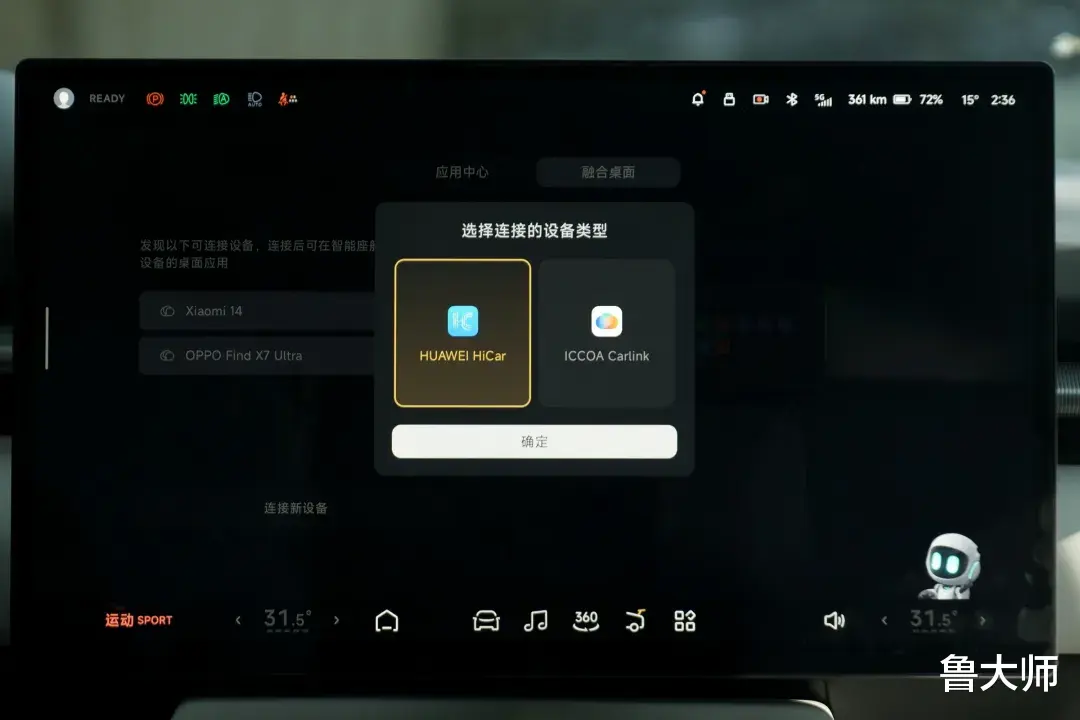 手机互联部分表现正常,HUAWEI HiCar和CarLink都支持,安卓用户可以无缝上车。
