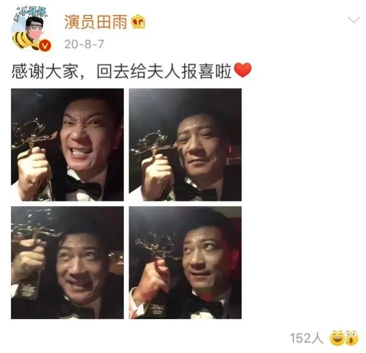 但他真正爆红,是2019年《庆余年》。王启年这个角色,混不吝、滑头、怕死又仗义,一上场就抢戏。观众说,看这剧就是为了他。那一年,他终于拿了白玉兰奖最佳男配,整整熬了24年。领奖那天,他在微博发了自拍,说“回家给夫人报喜啦”。不是发感言,不是喊口号,还是那副低调温吞的样子。评论区一片“狗粮吃到撑”。