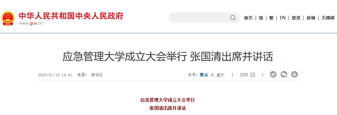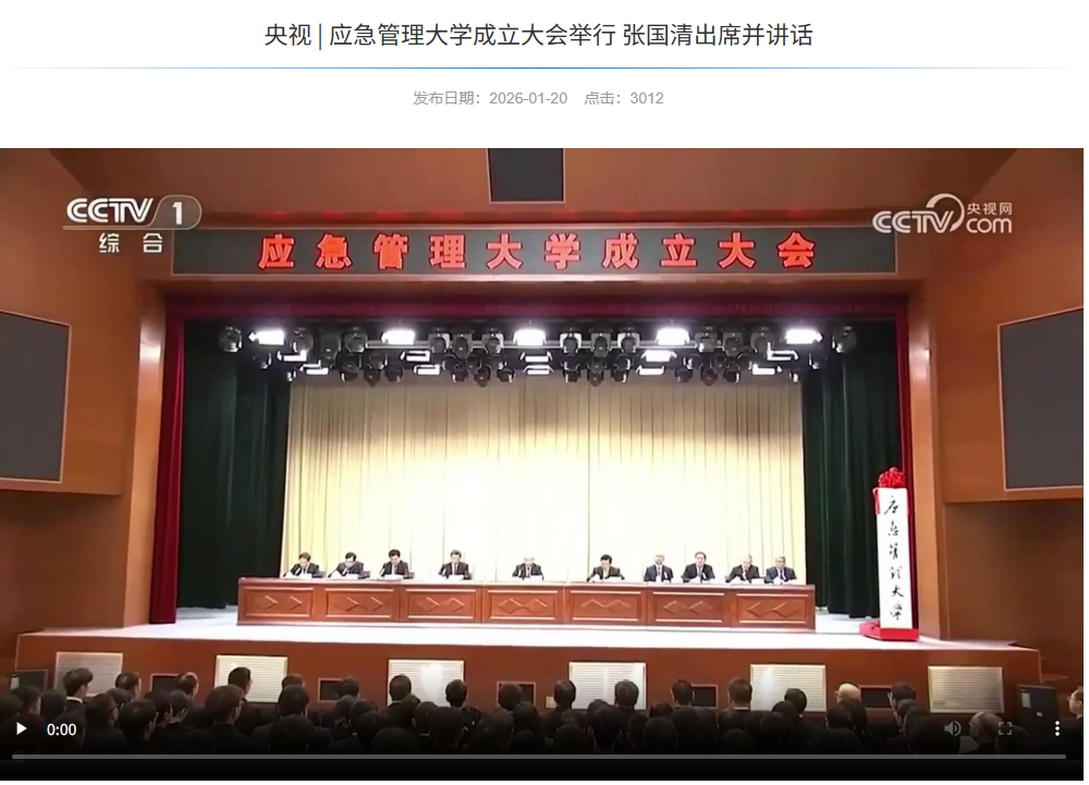 新华社的消息说,应急管理大学在这里举行成立大会,中央政治局委员、国务院副总理张国清来到了现场并讲话。
