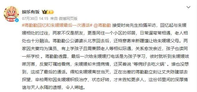 蒋勤勤的小区记忆:邻居的眼泪里,藏着最真的懂得蒋勤勤说自己像“刺猬”,朱媛媛却像春日暖阳——这对同住一个小区的邻居,连同陈建斌与辛柏青,活成了彼此的镜像。2006年同一年结婚,同样在事业与家庭间找平衡,连公婆寄来的特产,都会特意叮嘱“给媛媛爸妈也带一份”。那通最后的通话,成了蒋勤勤心头的刺。朱媛媛咳嗽着说“别担心”,还约着一起吃饭,可语气里的虚弱,早已被细心的她捕捉。后来才知道,朱媛媛连双方父母都瞒着病情,只想在好转后,笑着出现在朋友们面前。这份不想“添麻烦”的体贴,让蒋勤勤至今不敢在小区遛弯——怕看到熟悉的角落,想起那个再也见不到的身影。她送去的大米,意外泄露出辛柏青的近况:他和岳母、女儿守在一起。老人用余生的陪伴,为失去妻子的女婿筑起挡风的墙;孩子懵懂的眼神里,藏着让他必须站直的力量。这份被亲情与友情托举的日常,或许正是辛柏青还能慢慢往前走的原因。