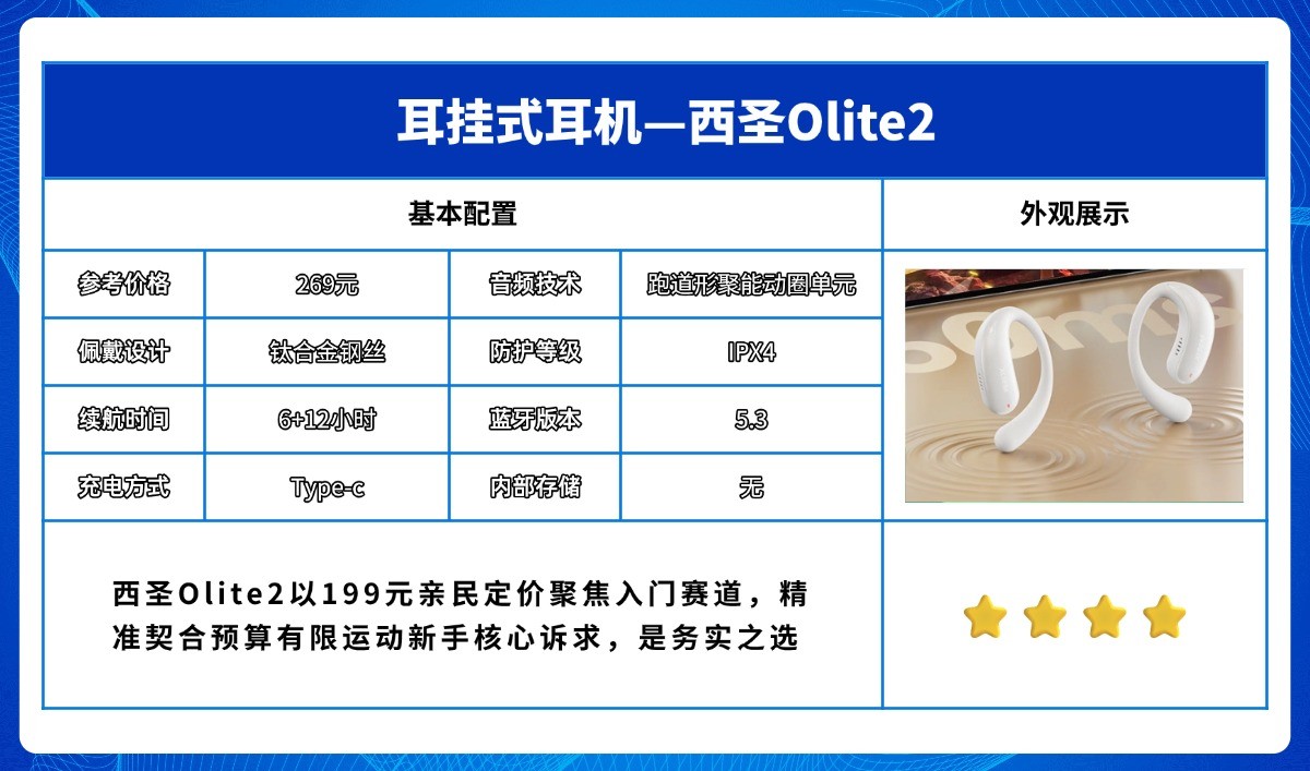 西圣Olite2以199元亲民定价聚焦入门赛道,精准契合预算有限运动新手核心诉求,是务实之选。