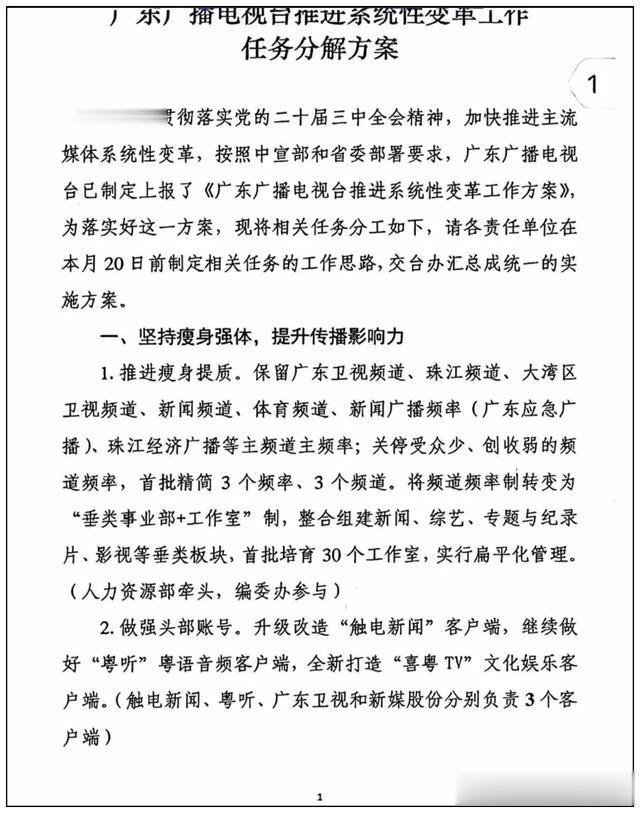 这次广东台的动作比佛山更大。电视台保留广东卫视、珠江台、大湾区卫视、广东新闻和广东体育,电台广播保留广东新闻914和珠江经济台974。首批先砍掉3个电视台和3个电台,理由是受众少、创收弱的。