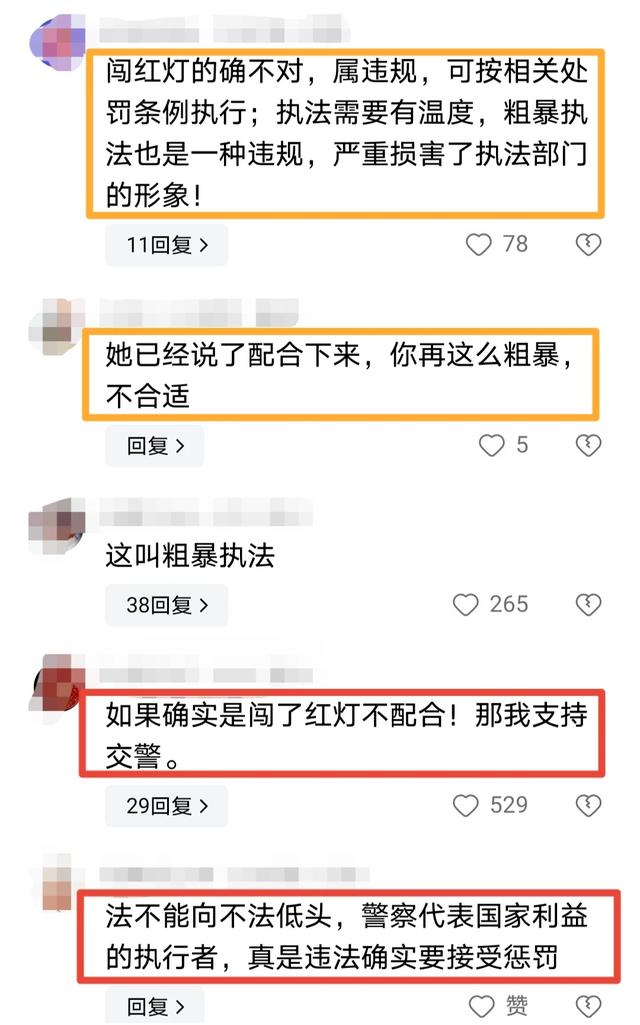 女子先是违法闯红灯,抓被后又不配合交警的处罚,还多次试图强行离开,交警劝说和口头警告无效后,才不得已采取强制措施。