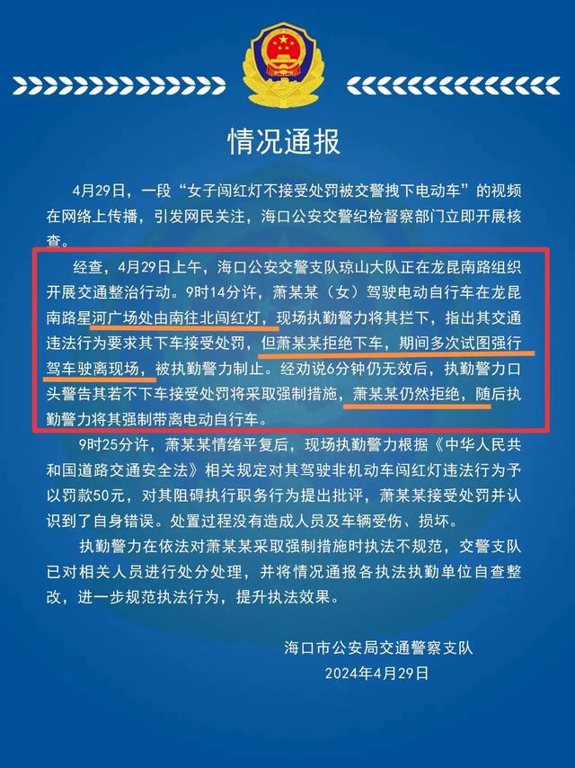 官方发布通报解释原因此事越闹越大之后,海口市公安交警纪检督察部门立刻展开调查。