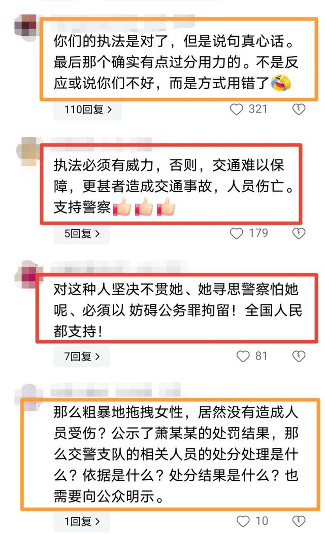 最终,交警只好强制执行,将肖某拽下电动车,也就是我们在视频中看到的那一幕。