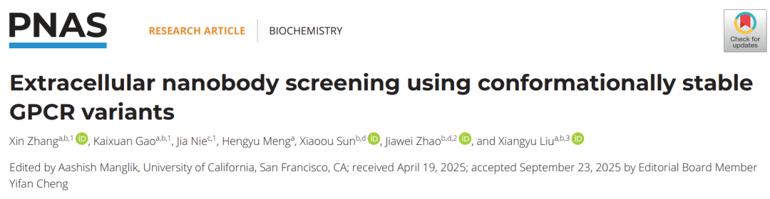 两项研究成果分别以“De novo design of a fusion protein tool for GPCR research”和“Extracellular nanobody screening using conformationally stable GPCR variants”为题,先后发表于《PNAS》上。