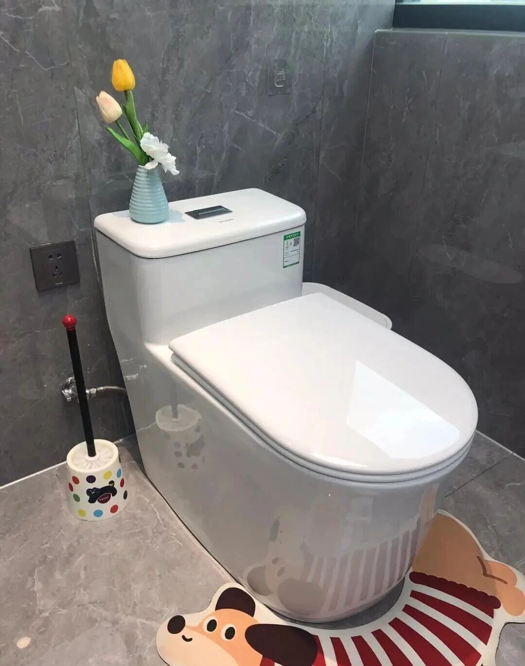 而且,虹吸式马桶冲水时噪音小,就算早上早起冲马桶,也不用担心吵醒家人。