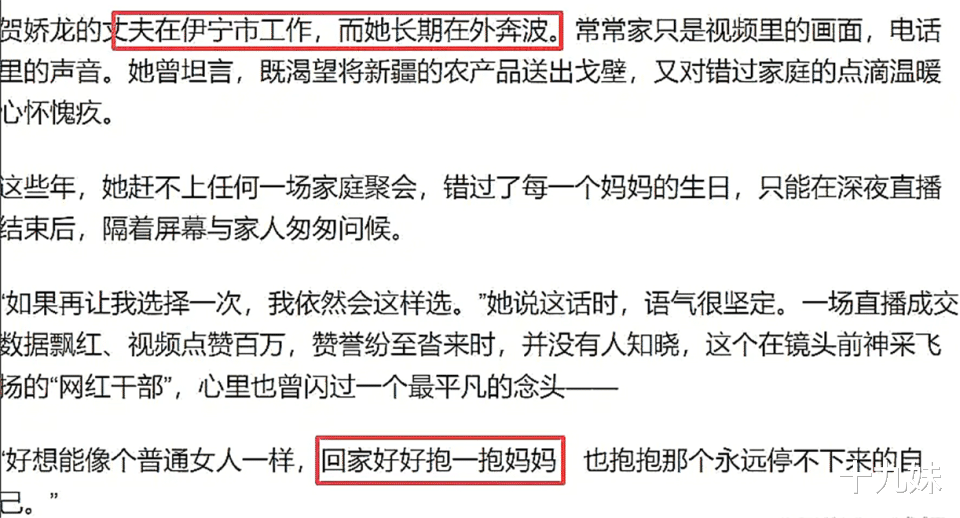 贺娇龙何尝不知母亲的牵挂,只是她常年在外奔波,对家庭的照顾注定会减少。她长期与丈夫分隔两地,近些年几乎缺席了家里的每一次相聚,错过了妈妈的每一个生日,对女儿的陪伴也少之又少,只能通过视频见面。