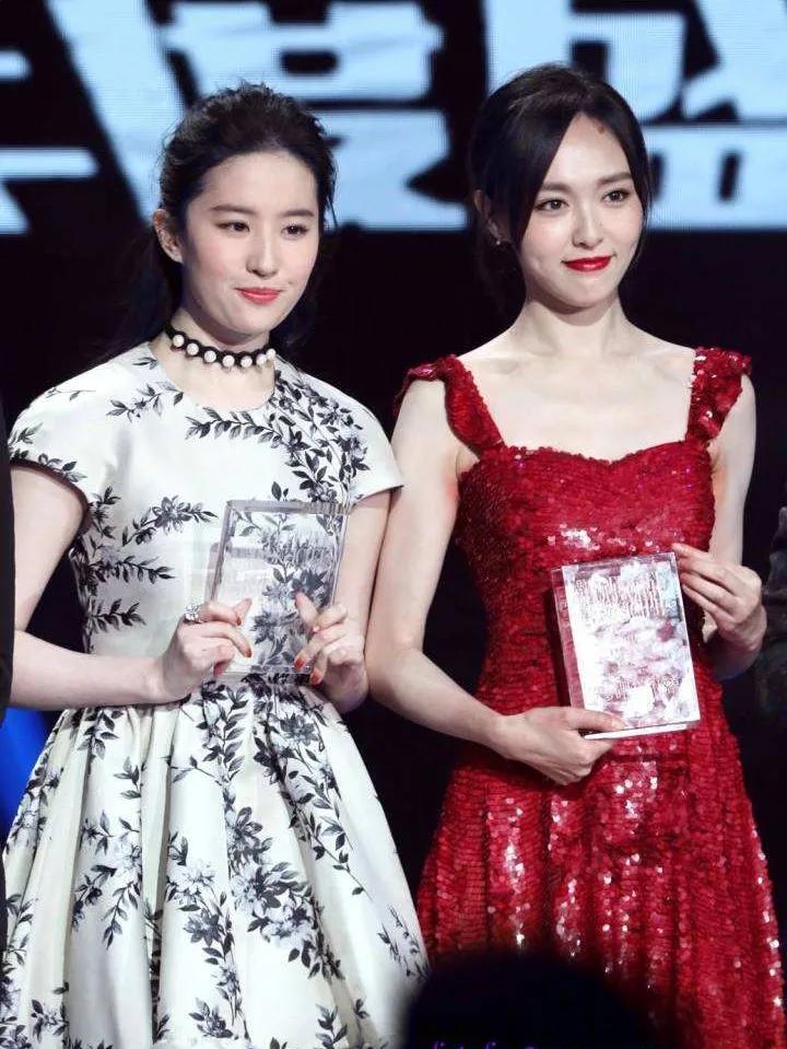 与刘亦菲站在一起,一个是清冷的白玫瑰,一个是热烈的红玫瑰,往那一站,便是全场的焦点。
