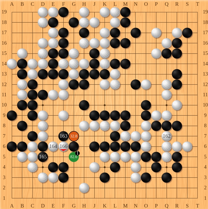 接下来,双方都带着一身伤病,却再次在整个右边棋盘进行了一场你死我活的大混战。丁浩胜率一直没有落后,第155手落子,丁浩胜率超过70%,野狐解说认为丁浩太有勇气了,本来要被杀大龙的他却在这时要杀申真谞的大龙啊。胡耀宇在这时认为,申真谞不行了,并质疑:胜率怎么还咬这么紧?丁浩干得太漂亮了!