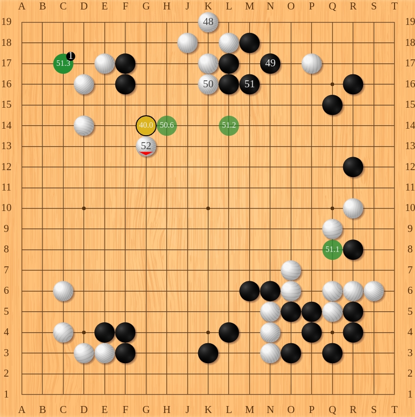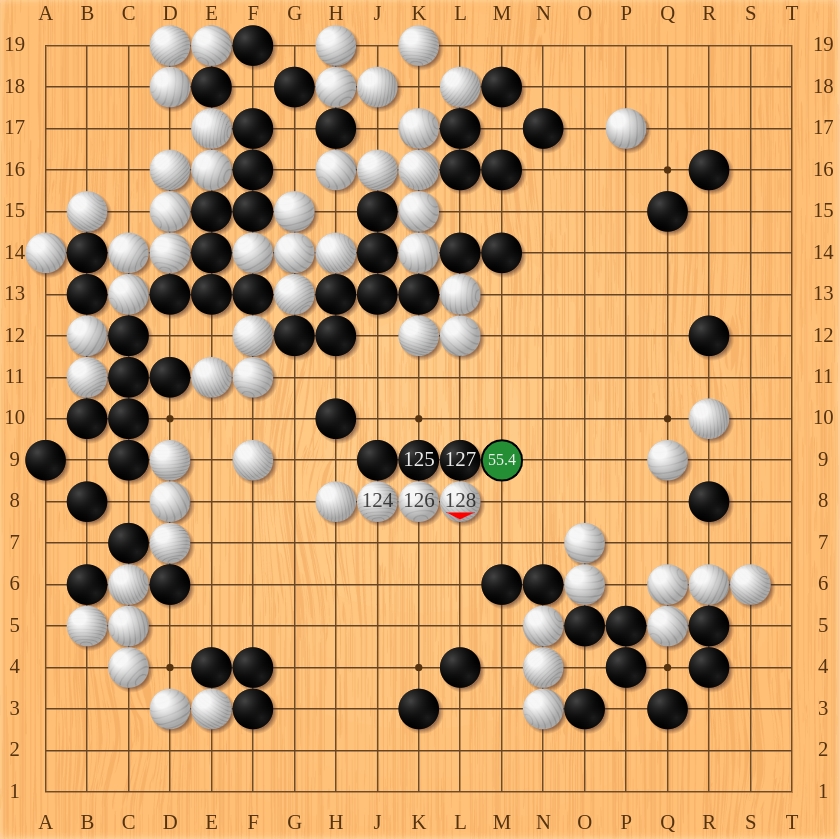 一步错步步错,就是53手这一步错误,丁浩在左边的大龙越走越虚弱。