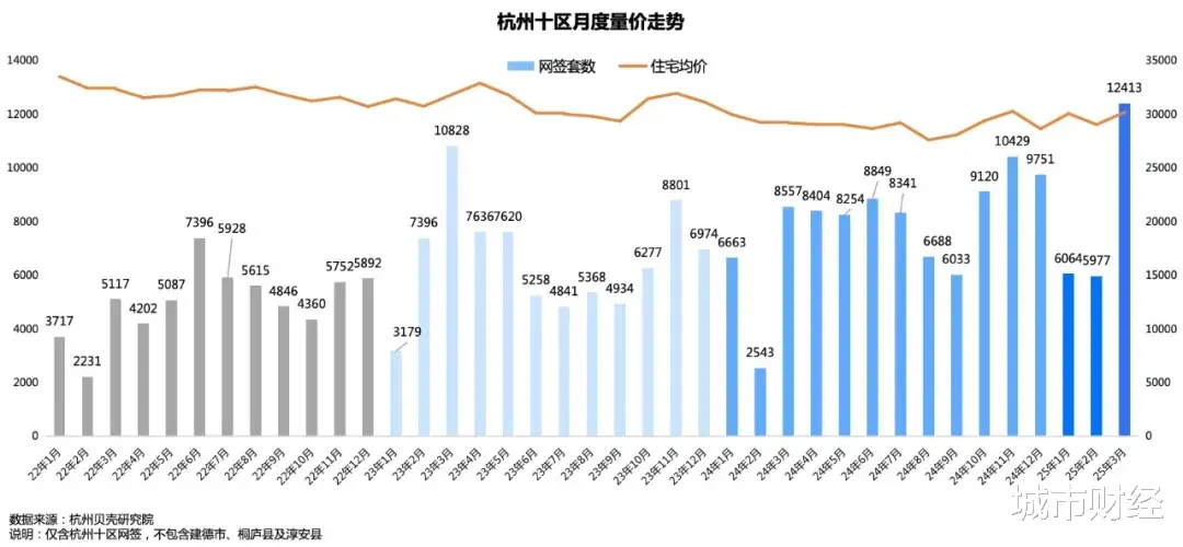 制图:城市财经;数据:各城市官方、机构公开数据同一个数据,可以有两个解读角度。乐观的人看到的是,虽然六个城市环比均下降,但同比都增长了不少。悲观的人看到的则是,虽然同比都增长了不少,但3月份火热的势头已经终止,6个城市环比集体减少,尤其是杭州、上海环比下降了四分之一左右。本号依旧属于后者,毕竟关税大战已经重燃。我反复强调、解释过一个事情,北上广深乃至杭州这类城市,本质是不缺购买力的,能够影响这些城市房地产行情的因素,信心和预期占主要。这就是为何深圳供需矛盾一直在,但过去三年深圳房价不断下跌,从8万跌破7万再跌破6万的原因。也是京沪富豪扎堆的顶端城市,过去几年跟随大趋势下跌的原因。北上广深杭这类城市,不缺购买力,决定他们的因素是信心与预期。而信心与预期的决定因素,则是全国的宏观大环境,也就是经济恢复和就业恢复情况。中国老百姓的就业、收入和经济预期是否在2025年能有边际性改善,这是决定一线城市能否彻底筑底回暖的关键。这也是我不断强调的,收入是就业的函数,就业是经济的函数。只有这些改变,预期才能改变,只有预期改变,大家才有能力有意愿入场。而美国发起的针对中国的关税大战,让年初的好势头,再次变得扑朔迷离。正是在这样的背景下,原本热火朝天的杭州楼市,势头戛然而止。3月份的杭州,如同上一轮楼市启动的深圳一样,成为了中国楼市新生代风向标。杭州本地媒体钱江晚报披露:3月,杭州二手房市场火力全开,“小阳春”变“大阳春”,十区共成交二手房12413套,仅次于2017年4月的12666套,创下近8年来新高。
