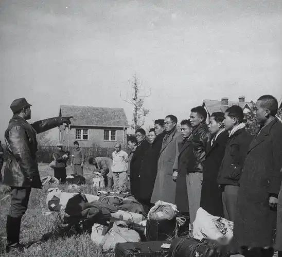 日本开拓团从日本出发前往东北地区,虽说是黑白照片可依旧能够看到整个队伍的规制和人数还是非常多的,浩浩荡荡的人群朝着东北迈进。