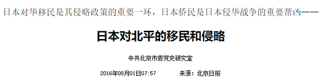 中国共产党新闻网——日本对北平的移民和侵略 2016-08-01