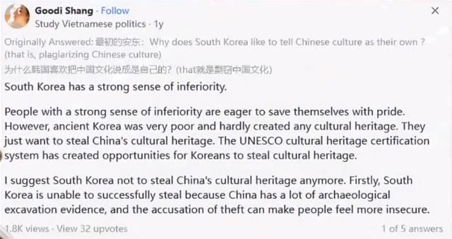 与此同时,一名印度尼西亚的网友更是在美版知乎上忍不住发出疑问,称为什么韩国人总是热衷于偷窃中国的文化呢?