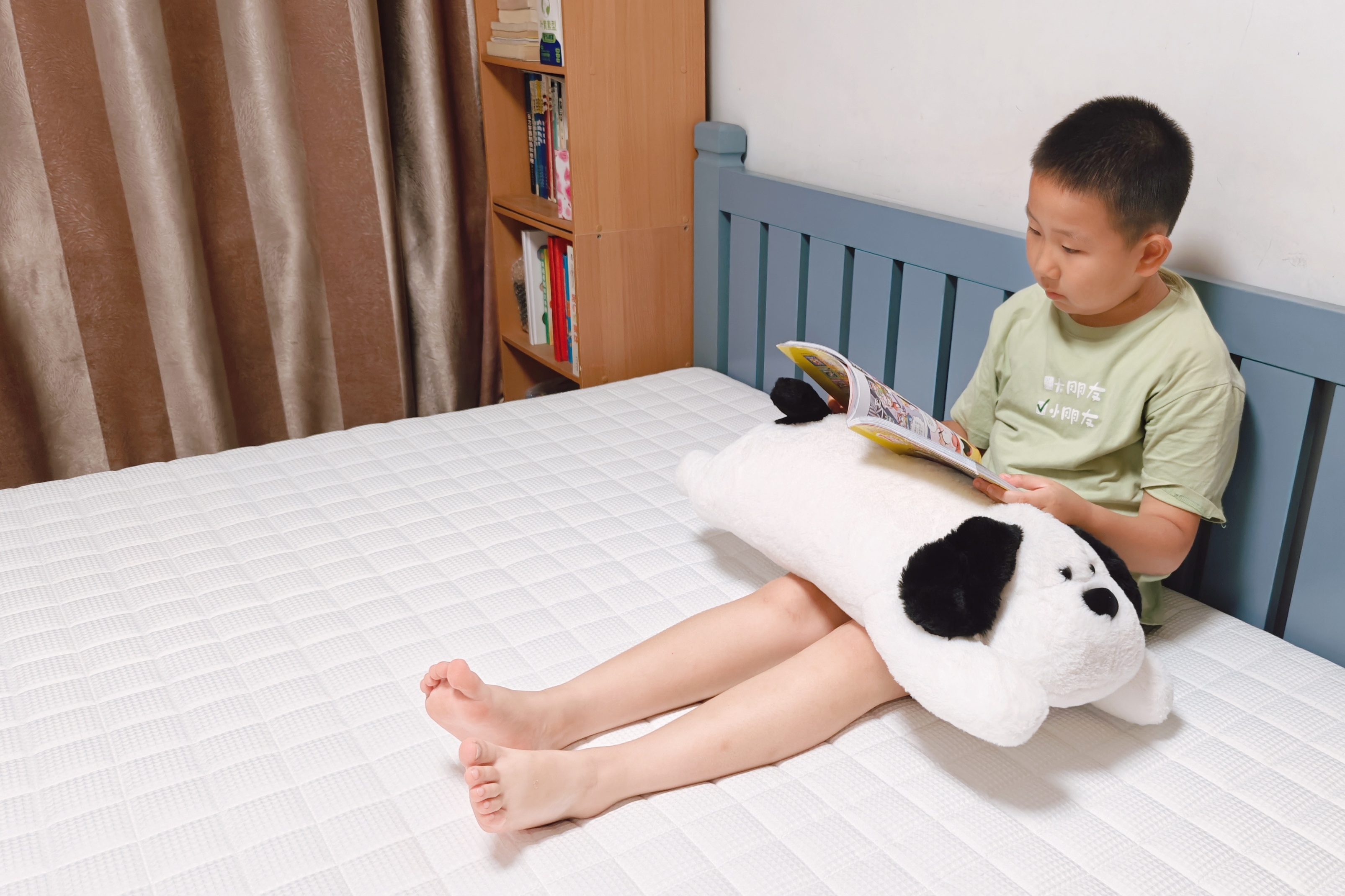 除了小蓝垫给的支撑外,这款床垫内置的四叶型6.5圈独立袋装弹簧的支撑回弹力也要比市面上常规的5.5圈弹簧要强上不少,楼主派出了家里体重接近80斤的小朋友一顿蹦跳测试,能够感受到床垫回弹非常匀称,和之前家里的床垫相比也更支撑有力!
