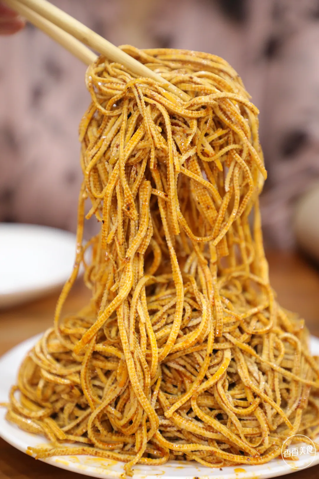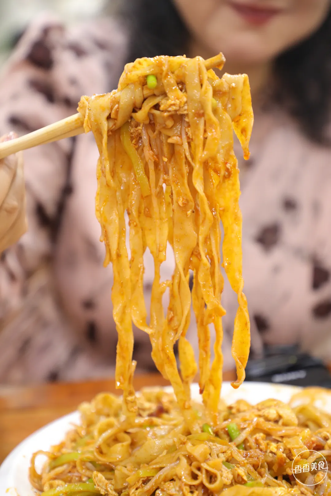 「孜然炒烩面」孜然炒烩面,是这两年店里的新宠。和传统老式烩面比起来,要更细一些,经过猛火爆炒后,和孜然的香气混为一体。大口吃起来筋筋弹弹的,最绝的就是绿豆芽和蒜薹的加入,清脆的口感让人吃起来清清爽爽的。虽说标的是“微辣”的口感,但是辣味不明显,孜然味更浓郁一些,让人上头。