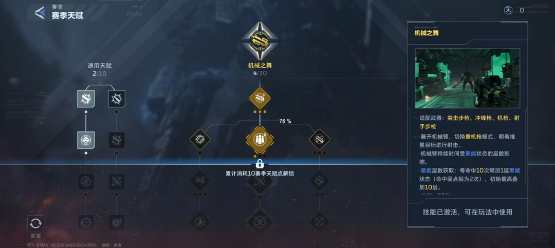 赛季内容中,武器的赛季插件通过不同玩法刷取,一把枪械可以装4个插件,每个插件有不同的增益。同时推进赛季主线可以获取天赋点,根据自身意愿选择性点亮天赋树。不同武器、插件以及天赋点搭配供玩家进行不同流派构筑(BD)。