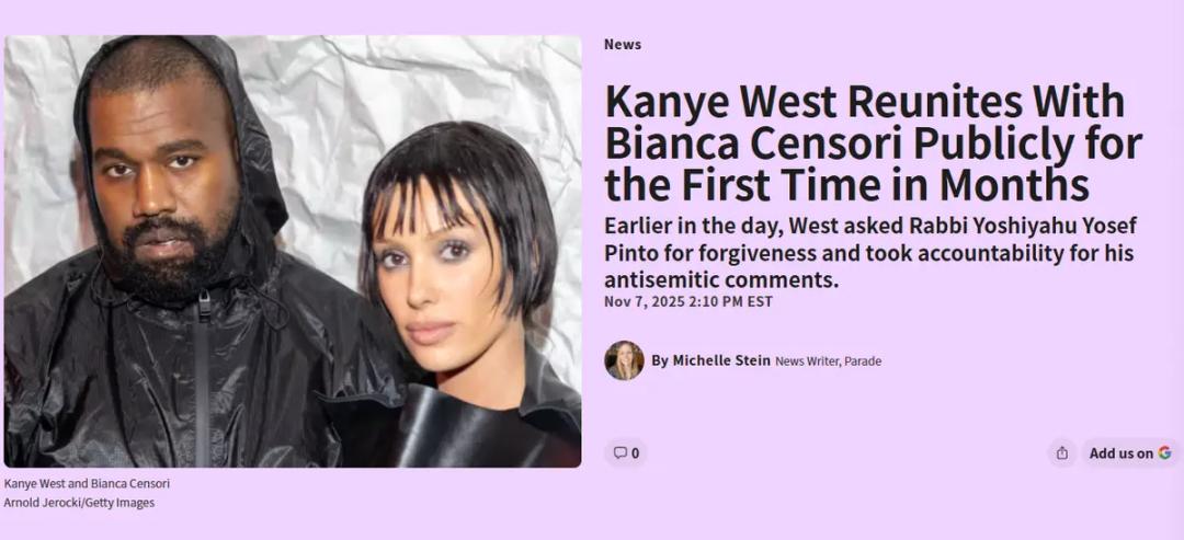 “在分隔数月后,侃爷几个月来首次公开与比安卡同框”