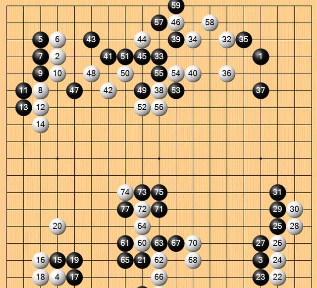 本局,金京垠四段执黑先行。黑77断,本局的败招。这手棋一出,黑棋的胜率从61.2%猛降至36.7%。