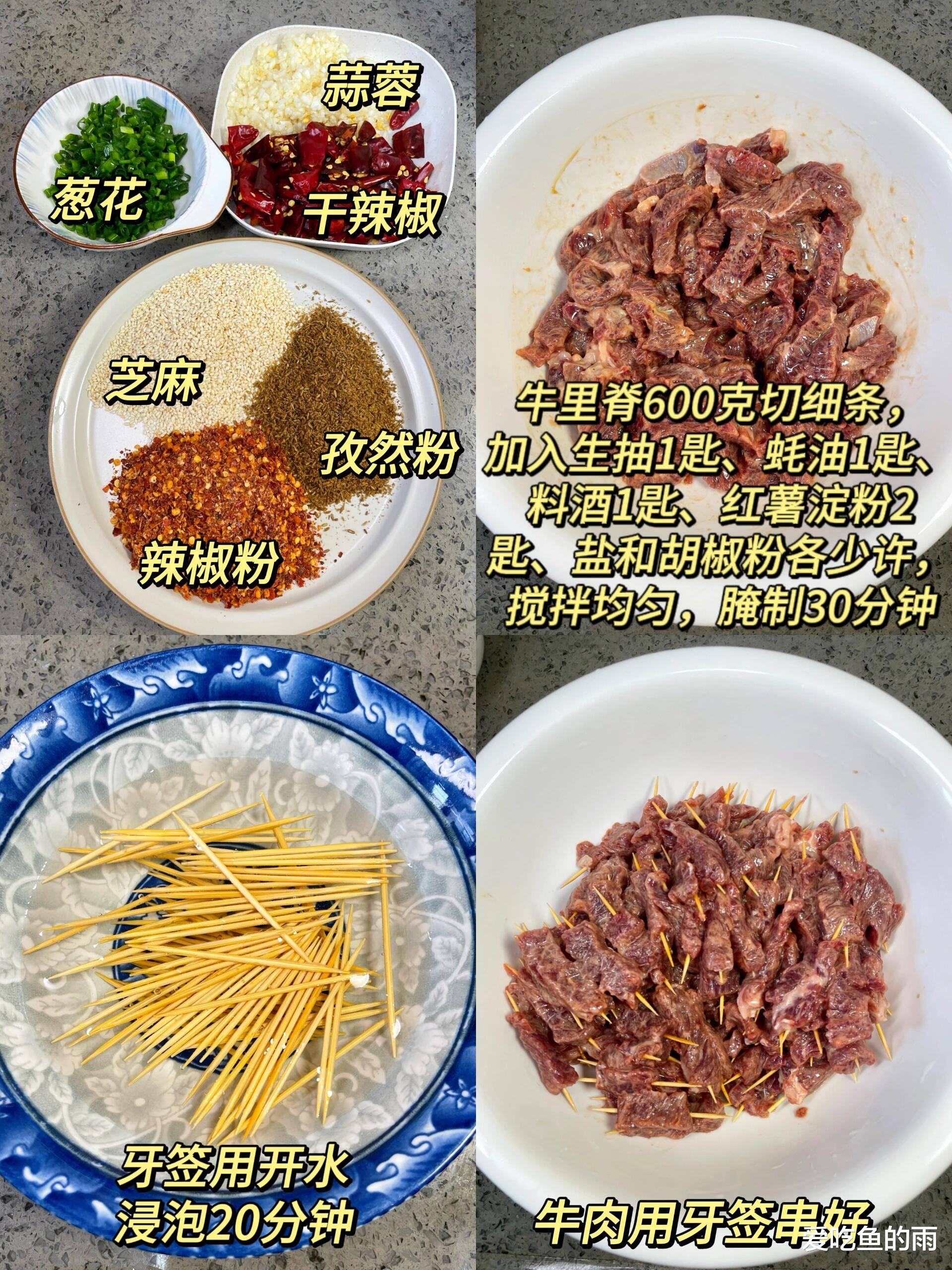 等待的时间,我们来玩个“穿针引线”的小游戏。拿出家常的牙签,把腌好的牛肉片轻轻卷起,或者对折,用牙签斜着穿过去固定好。这个过程特别解压,看着一根根“牛肉串”在手里诞生,成就感满满。而且你想过没有,为什么非得是牙签?这可不只是好玩。它让每一小块肉都能均匀受热,锁住汁水,更重要的是——优雅! 吃完不用脏手,简直是懒人美食的智慧结晶。
