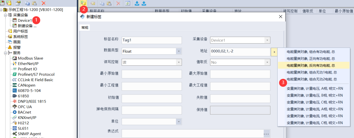 5. 按如下顺序,添加要采集的数据。可添加多个数据。