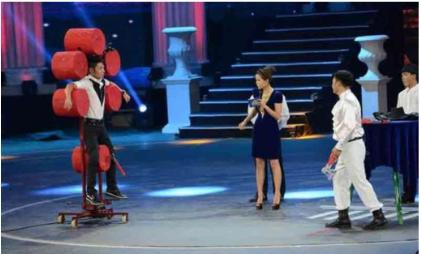 在进行到节目环节飞斧子时,现场的人安安静静听着介绍。