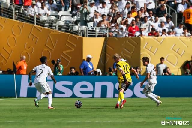 2球领先的皇马踢得更加从容,在场面上完全压制了对手,多特蒙德只能疲于防守,零星的反击很难给皇马防线造成威胁。皇马牢牢掌控着节奏,半场2球领先,在控球率、射门等数据上,皇马也占据明显上风。