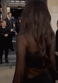 她身穿一条黑色透视纱裙登场,这种“全包”的造型因为透视效果,瞬间就把性感的氛围提升到了极致。