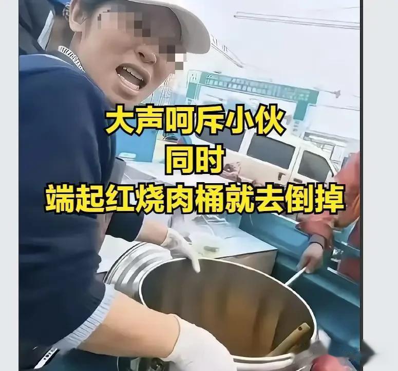 小伙气的回身发抖,这可是他起大早忙活做出来的一大桶卤肉,就这样被倒掉了。