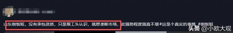 “倒饭姐”还嚣张的喊着:“这是我的工地,不许你在这儿摆摊儿,我说不让卖就不让你卖!”