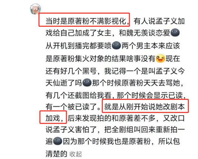 依旧是旧事重提,说孟子义私自加戏,甚至再一次开始了对孟子义的各种辱骂攻击。