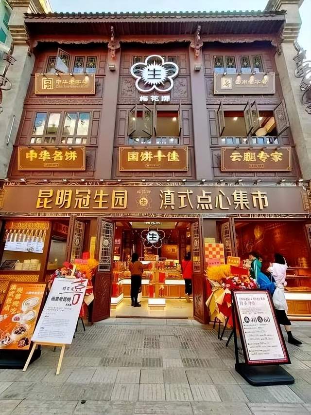 除此之外,这家以经营经典云南风味为主的百年昆明冠生园滇式点心集市里,还能看到不少南来北往的游人,点上几样现烤鲜花饼、云腿酥等极具云南地方特色的点心,慢慢品味其中风情。